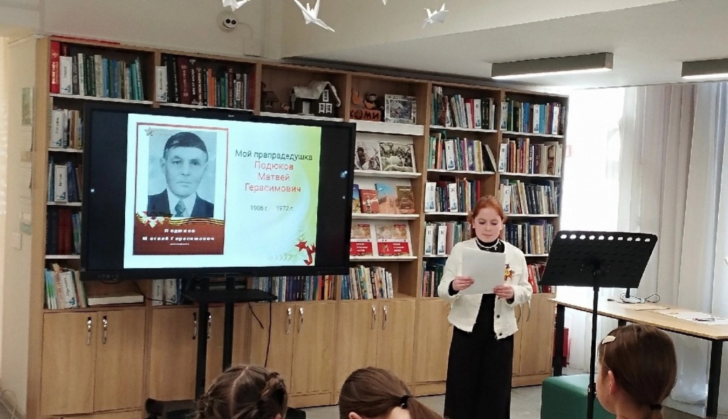 На этом мероприятие выступила Петрунева Алёна, ученица 4 класса Шошкинской школы и рассказала про своего прапрадедушку Подюкова Матвея Герасимовича.