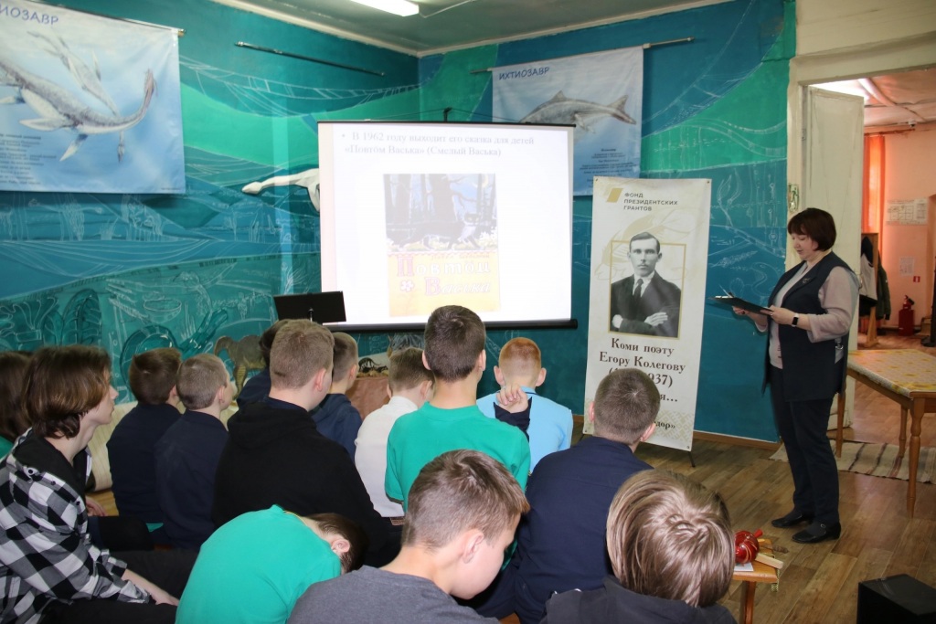 Заведующий Пажгинской библиотекой-филиалом Н. В. Шишмакова поделилась ценным опытом работы по продвижению творчества замечательного писателя П. А. Шеболкина. Она презентовала сказку «Повтöм Васька» (Смелый Васька), которую мастерски озвучили: Л. Воронова, Д. Мартынов и Н. Торлопова.