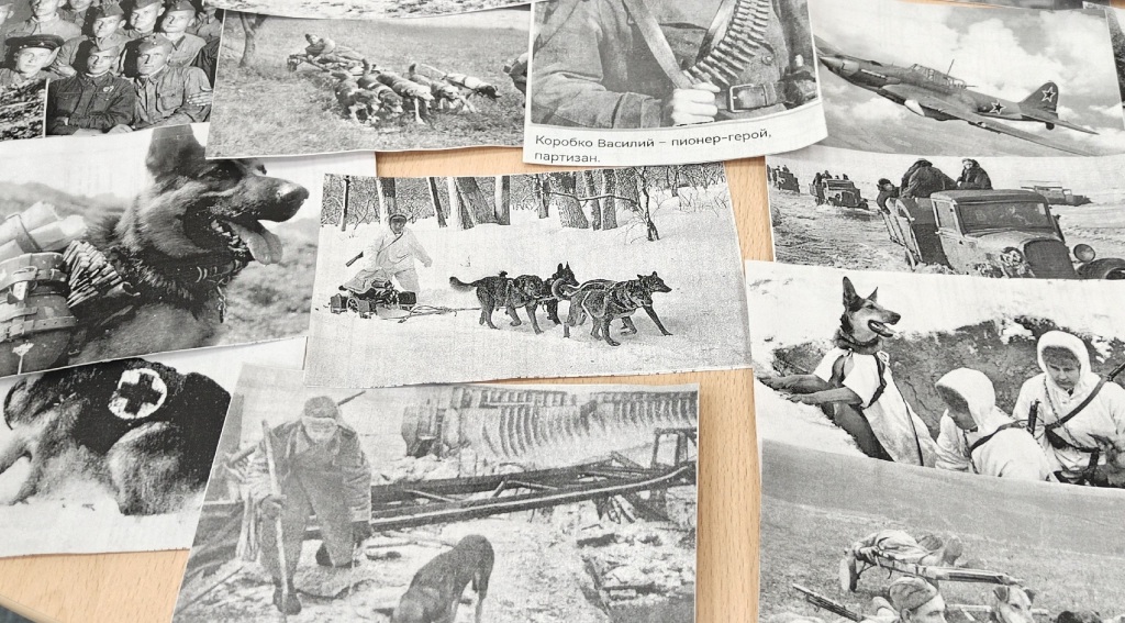 Подробнее мы с ребятами, рассматривая изображения с собаками, поговорили об их помощи людям в годы войны.