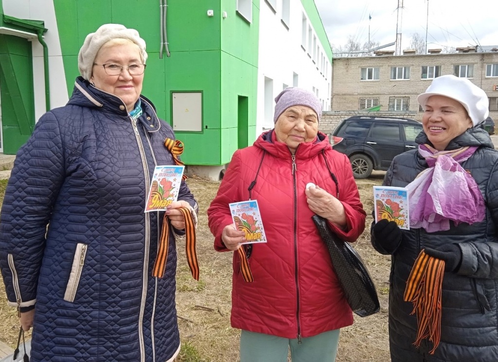 Сотрудники библиотеки вышли на улицу села и поздравили жителей с наступающим праздником Великой Победы. Каждый прохожий отвечал на вопросы небольшой викторины на тему войны. Кто-то легко и быстро отвечал на все вопросы, кто-то затруднялся и тогда ему помогали. Бонусом за правильные ответы были подарки: георгиевская ленточка, открытка и значок Победы.