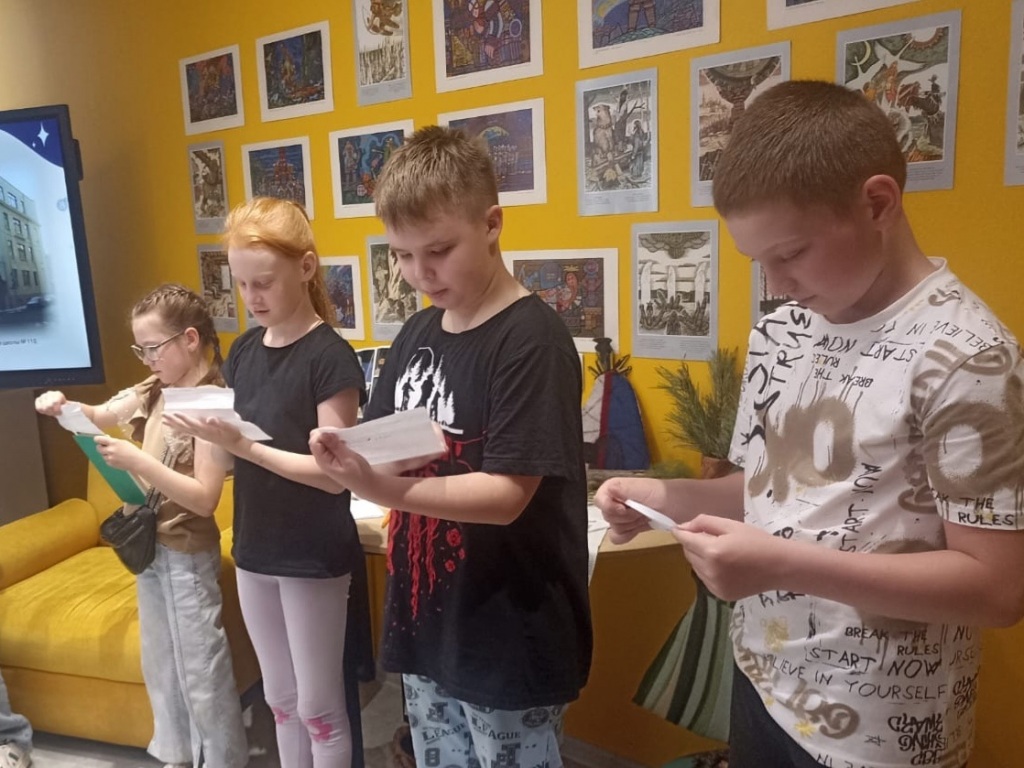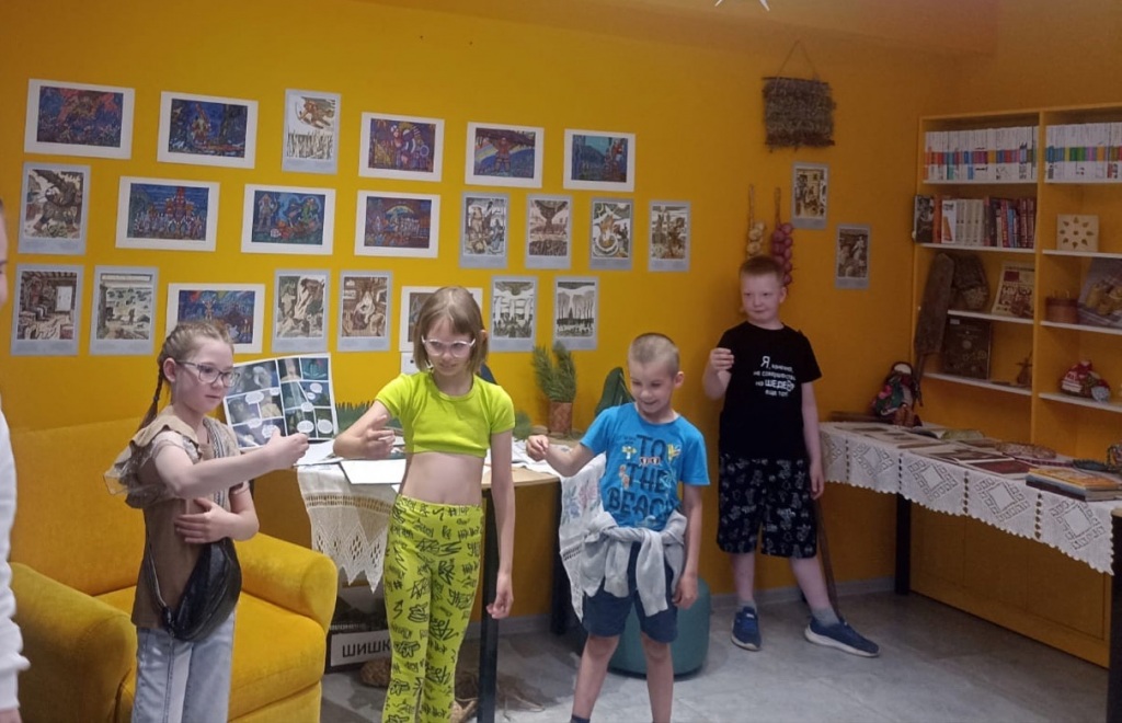 Ребята из летнего лагеря Выльгортской СОШ №1 посетили литературную галерею «Улыбку и смех он дарит для всех!», посвящённую Юрию Сотнику.