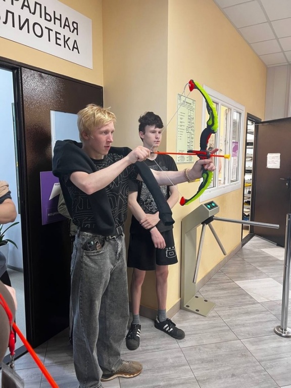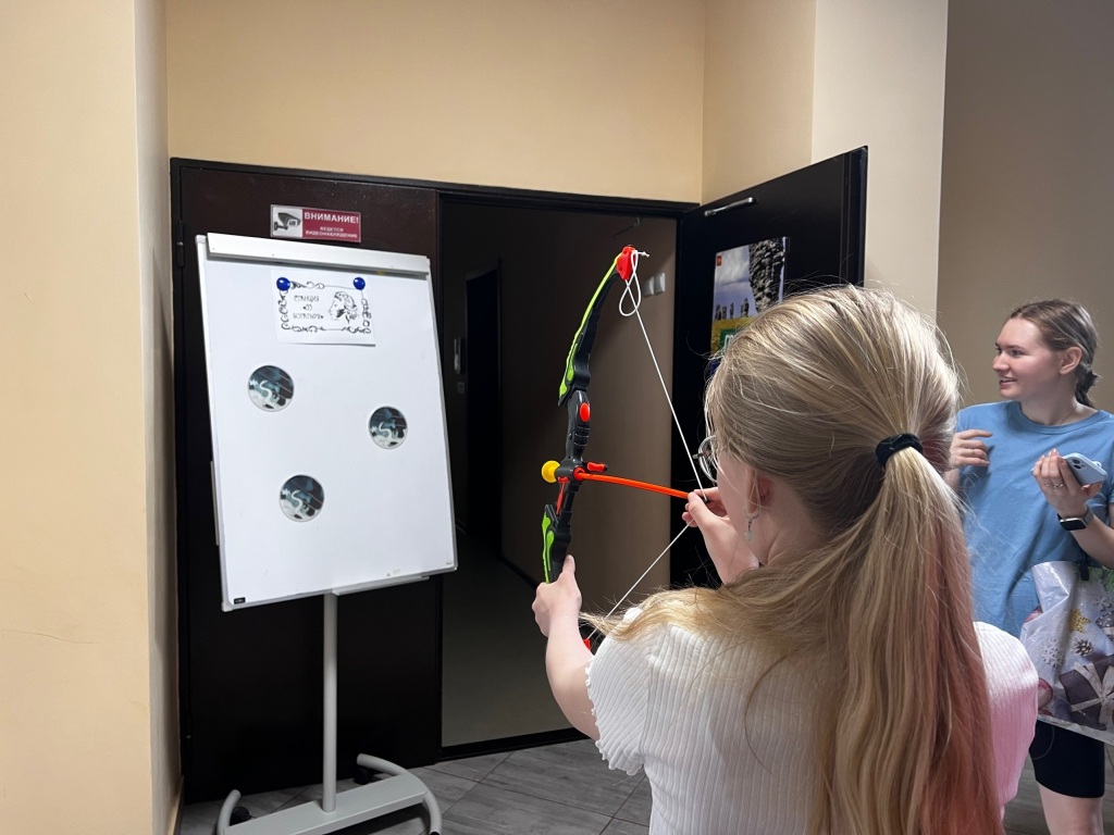 Сотрудники Центральной библиотеки подготовили для ребят увлекательную игру по станциям «Мир пушкинских героев». Каждая из станций содержала различные задания – ребята по маршрутным листам путешествовали по станциям и собирали «орешки» - фишки, которые давали им ведущие. Станция «33 богатыря» проверила ловкость и меткость детей: с помощью лука и стрел ребята ловко попадали по мишеням с изображением коршуна («Сказка о царе Салтане. Станция «Волшебные строчки» помогла ребятам вспомнить известные с детства сказки великого поэта. Дети не только соотносили картинки с отрывками из сказок, а также восстанавливали пропущенные строчки. В случае затруднений практически на всех станциях ребята могли обратиться к книгам. Не обошлось и без настольной игры-бродилки, посвященной Александру Сергеевичу Пушкину, где участники смогли узнать много нового о жизни и творчестве великого поэта. Кроме того, в рамках празднования Дня русского языка студенты прошли станцию, где им предстояло разгадать названия частей тела на древнерусском языке. Это задание помогло углубить знания о языковой культуре нашего народа.