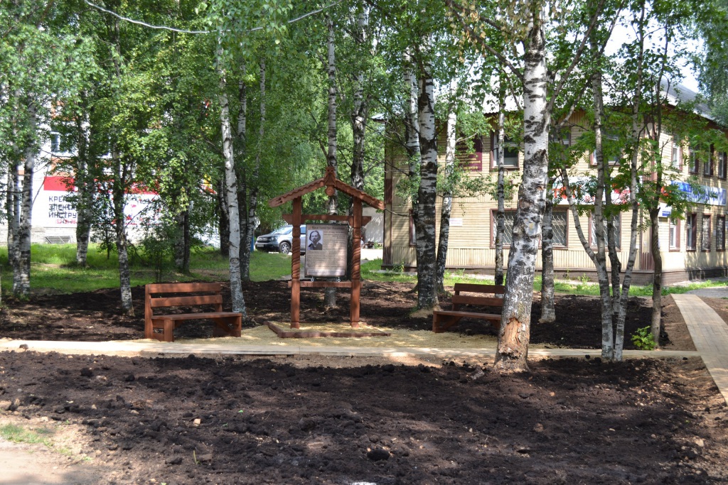 Сквер был реализован в два этапа. Первый этап начался летом 2016 года. В березовой роще появился информационный стенд, посвященный К.Жакову, выполненный мастером-резчиком Евгением Шабалиным, деревянные тротуары и скамейки, изготовленные Сергеем Соловьевым, Сергеем Можеговым и Александром Крюковым, строительный материал предоставил Вадим Коровушкин. Второй этап стартовал в сентябре. Разработанный педагогом колледжа искусств Александром Сергиенко дизайн взялся реализовывать Василий Адамчук. Сыну помогал отец Василий Адачук. Сквер стал богаче на входную группу и ряд деревянных скульптур, изображающих персонажей из этнографических материалов К.Жакова.