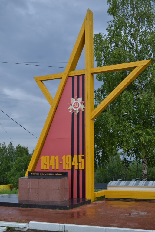 На мемориале установлен памятник из дерева в виде силуэта пятиконечной звезды. Справа от памятника – плиты с именами погибших воинов.
