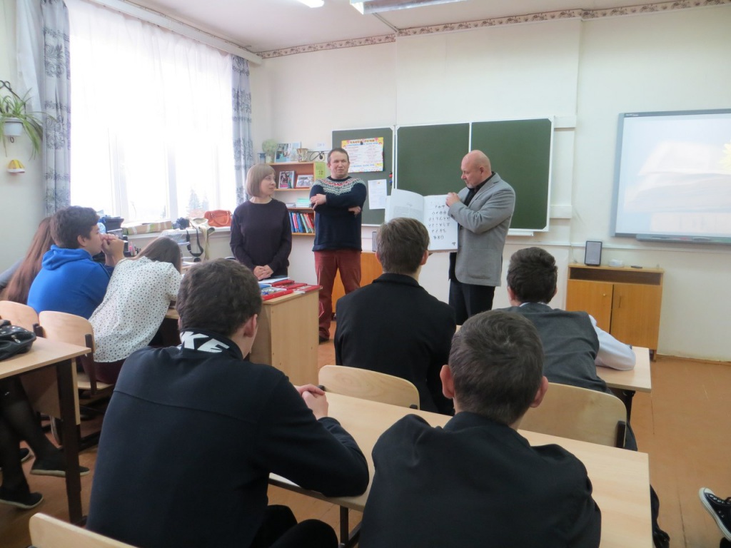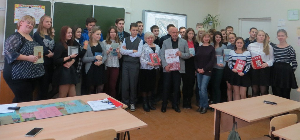 В Зеленецкой средней школе состоялась встреча учащихся старших классов с творческой группой журнала "АРТ": главным редактором Павлом Лимеровым, редактором Татьяной Логиновой и художником Юрием Лисовским.