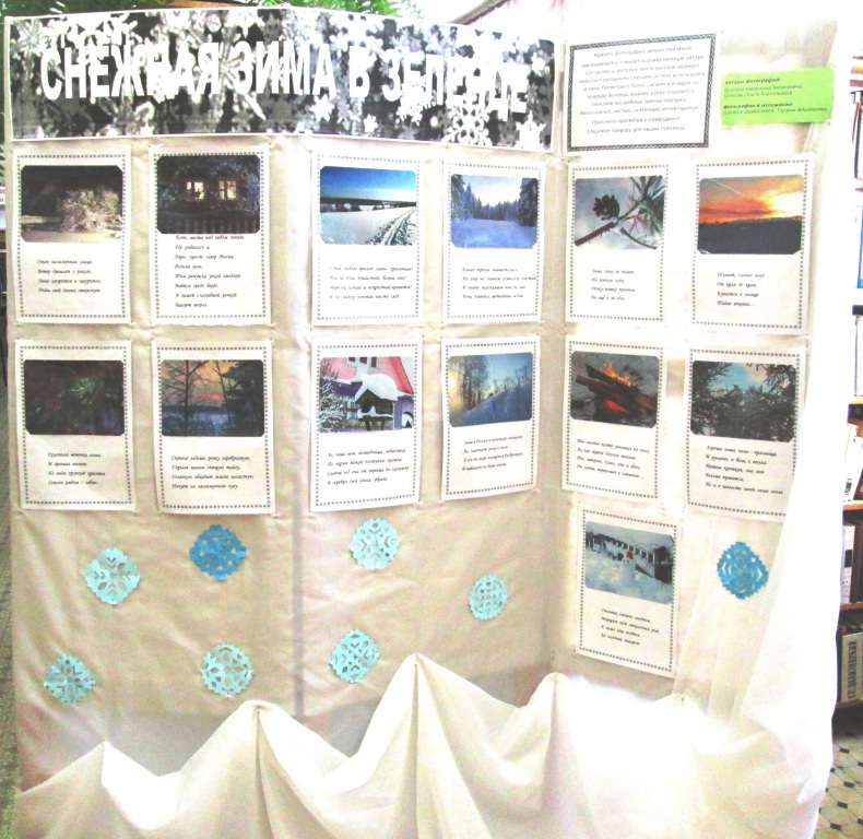 В Зеленецкой библиотеке-филиале им. А. Лыюрова открылась фотовыставка, авторами которых являются Осиповы Валентина Алексеевна и Ольга Анатольевна, фотографии в изложении поэтессы Дербеневой Галины Ильиничны.