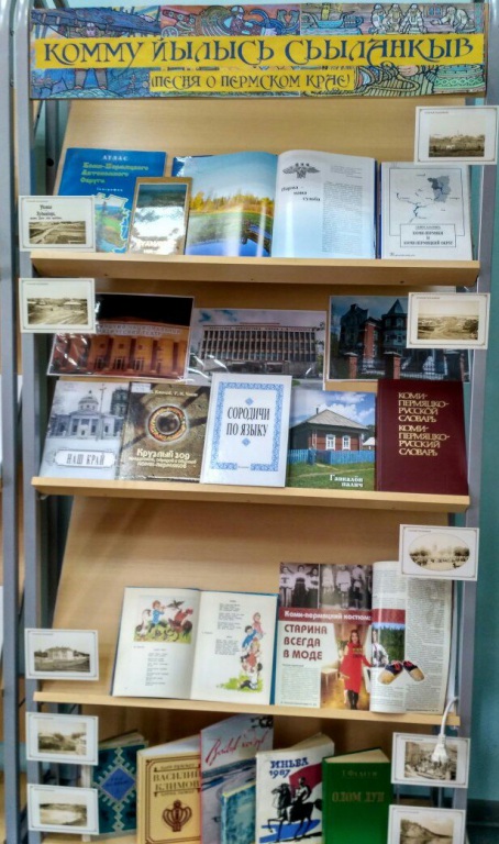 Для читателей также оформлена книжная выставка «Комму йылысь сьыланкыв» / Песня о пермской крае/.