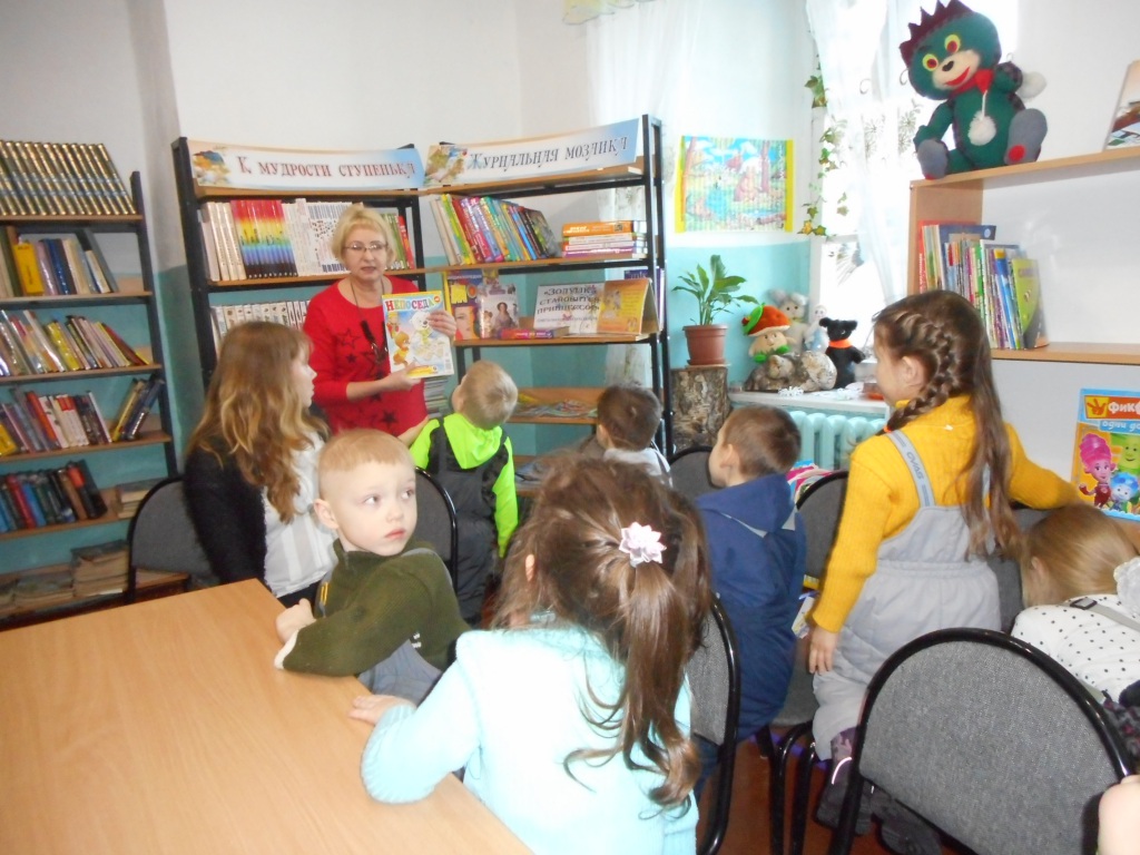 Во время экскурсии детям рассказали, что зал, в котором можно почитать книги, называется читальным. Ребята приходят сюда почитать книги, посмотреть журналы, поиграть в игры. Зал, в котором выдают книги на дом, называется абонентным. Выдает книги читателям библиотекарь. Выбранную из огромного разнообразия книгу, можно взять только после записи в формуляр читателя. Затем ребятам рассказали о правилах поведения в библиотеке и как надо обращаться с книгами. И конечно же, ребята поиграли в игру - викторину, после чего с любопытством рассматривали красочные книги. На прощание работники библиотеки предложили детям прийти в библиотеку вместе с родителями и выбрать понравившуюся книгу на дом.