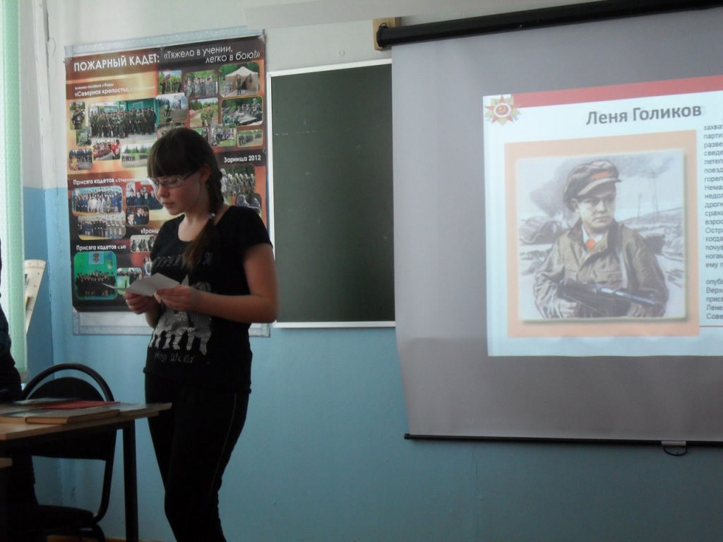 Ыбские кадеты также, как и многие другие российские учащиеся, отметили эту памятную дату. Девочки-кадеты приготовили небольшие сообщения о подвигах пионеров-героев, чей подвиг вписан отдельной страницей в историю Великой Отечественной войны. За особые заслуги, мужество и героизм, проявленные с немецко-фашистскими захватчиками, многие советские дети заслужили самую высокую награду – звание Героя Советского Союза. Они были разведчиками, подрывниками, связистами, адъютантами армейских и партизанских командиров.