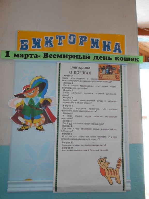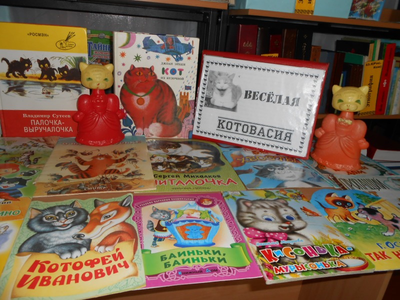В библиотеке была оформлена выставка художественных книг о котах «Весёлая КотоВасия», а для начальных классов предложена викторина