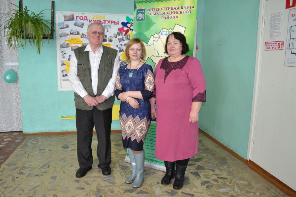 Литературное турне продолжилось в местном Доме культуры, где в этот день Часовская библиотека отметила 110-летие со дня его открытия. Бабушка-забавушка в коми народном костюме встречала гостей, задавала вопросы. За правильный ответ гости получали жетоны. По окончании мероприятия главный приз достался Плосковой Валентине Ивановне – подписка на районную газету «Наша жизнь».