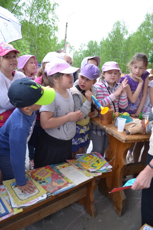 Здесь в честь Дня защиты детей и открытия детских площадок прошла игра по станциям. Одна из станций, задания для которой были подготовлены библиотекарями центральной детской библиотеки Тамарой Осташовой и Светланой Мартюшевой, называлась «Бюро находок». Здесь были представлены предметы и атрибуты из различных литературных произведений. Ребятам следовало угадать: откуда тот или иной предмет. И по возможности правильно назвать книгу и автора.