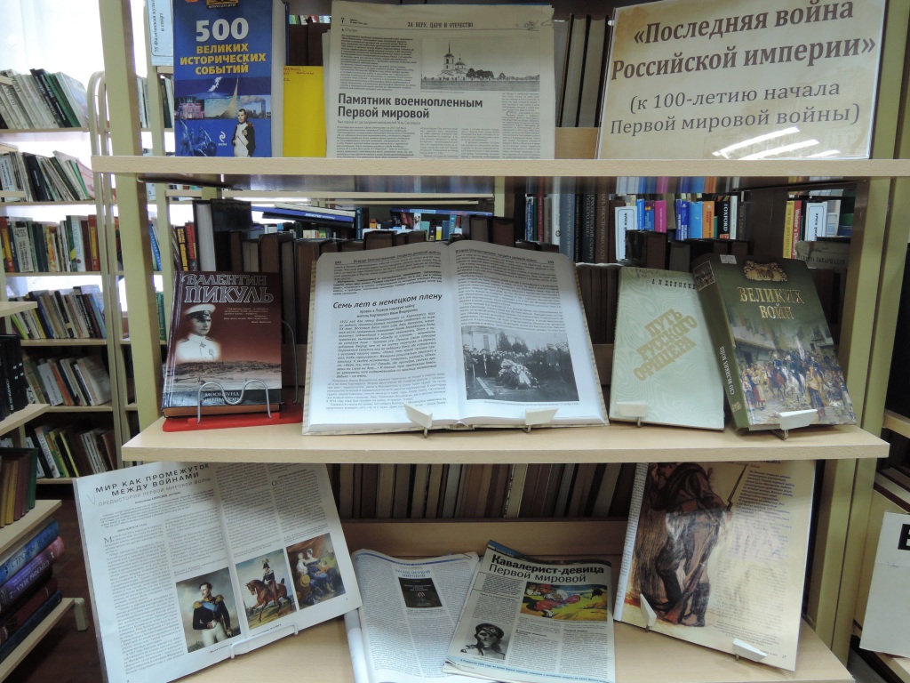 Более подробную информацию об истории Первой мировой войны можно найти в центральной библиотеке на внутриполочной выставке «Последняя война Российской империи».