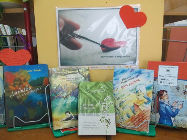 На выставке "Окунитесь в мир любви..." представлены произведения Василия Шукшина, Елены Габовой, Марины Плехановой, Маши Лукашкиной, Веры Тименчик, поэзия Александра Блока, Фёдора Тютчева, Афанасия Фета.