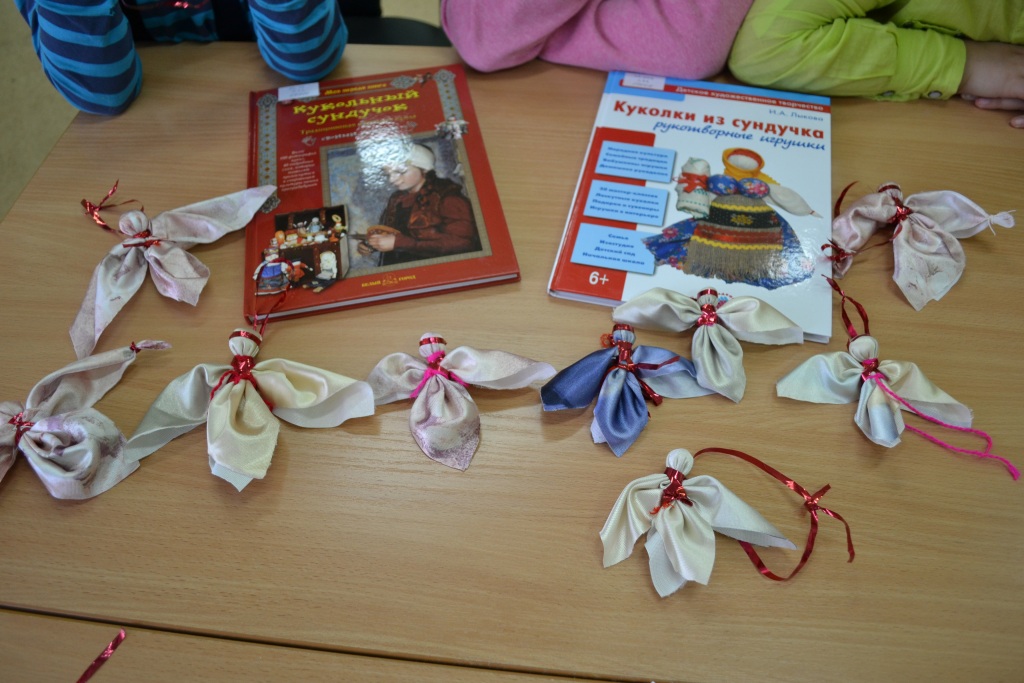 Читатели узнали о том, что раньше на Руси куколок делали не только для игры, но в качестве оберега от злых сил. Ребята познакомились с куколками «Пеленашкой», «Помощницей», «Сплюшкой», «Десятиручкой» и «Ангелом». Юные мастера традиционным народным способом сделали «Ангела» из ткани, использовали для украшения нитки и мишуру. Такая куколка – это не только подарок на мамин праздник, но может использоваться как украшение для новогодней ёлки – нужно только проявить фантазию.