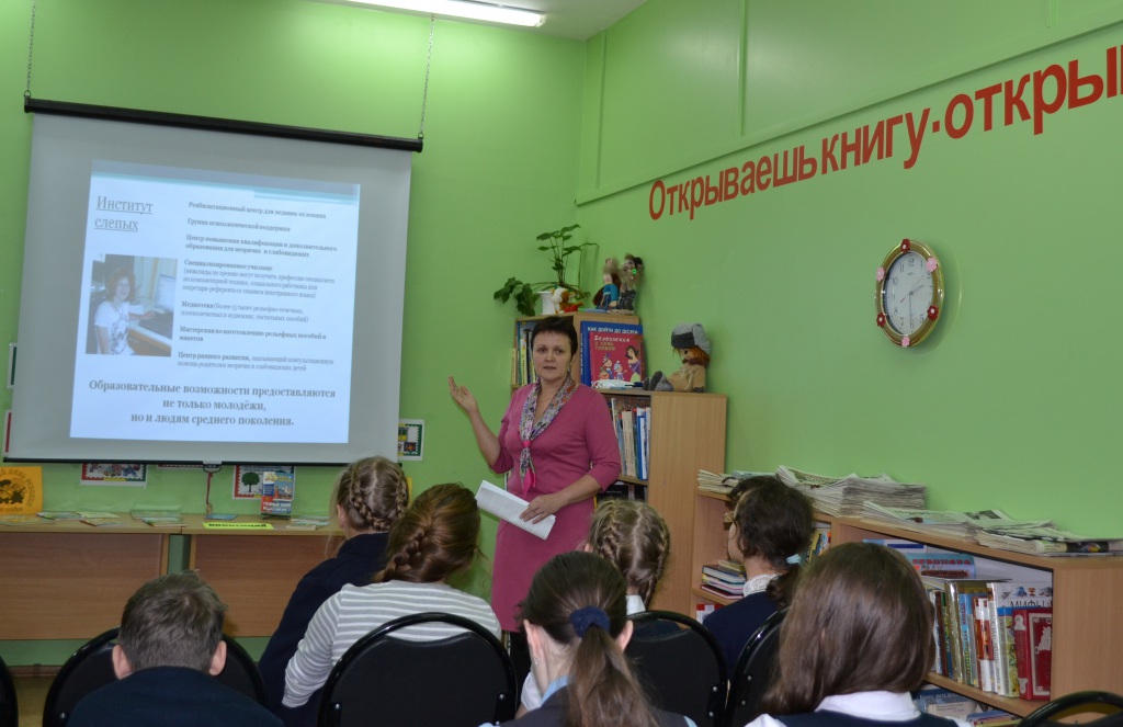 Эта беседа – только одно звено целого ряда мероприятий, организуемых центральной детской библиотекой в рамках месячника «Белая трость».