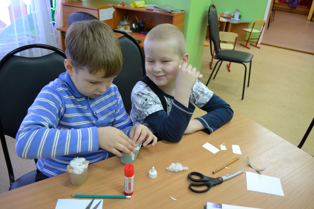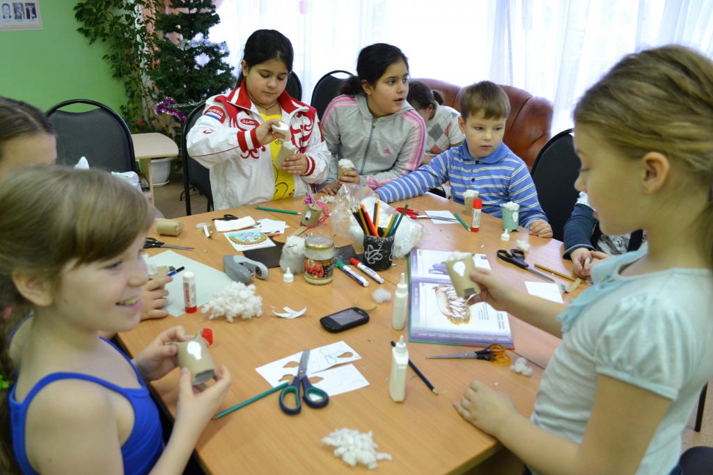 Тело – бочонок, четыре тонких ноги с чёрными копытцами, узкая вытянутая мордочка с печальными лазами, озорные кудряшки надо лбом – визуально представить домашнюю овцу помог ребятам «Иллюстрированный коми-русский экологический словарь». А воплотили идею в жизнь юные читатели с помощью, казалось бы, совсем бросового материала – картонных трубочек от туалетной бумаги.