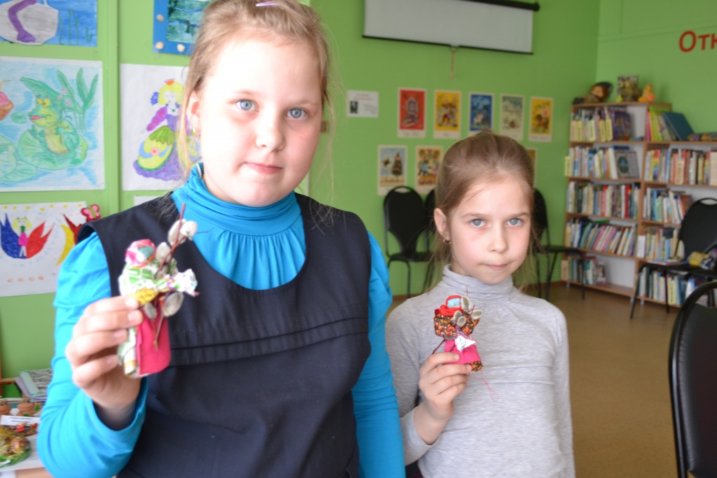 В Вербное воскресенье в центральной детской библиотеке наши юные читатели сделали своими руками такую вот куколку. Раньше изготовление этой куклы считалось таким же обязательным занятием перед Пасхой, как и роспись яиц. На кукле обязательно должна быть красная ткань: косынка, передник либо сарафан, так как красный цвет символизирует жизнь. В руках кукла должна держать веточки вербы.