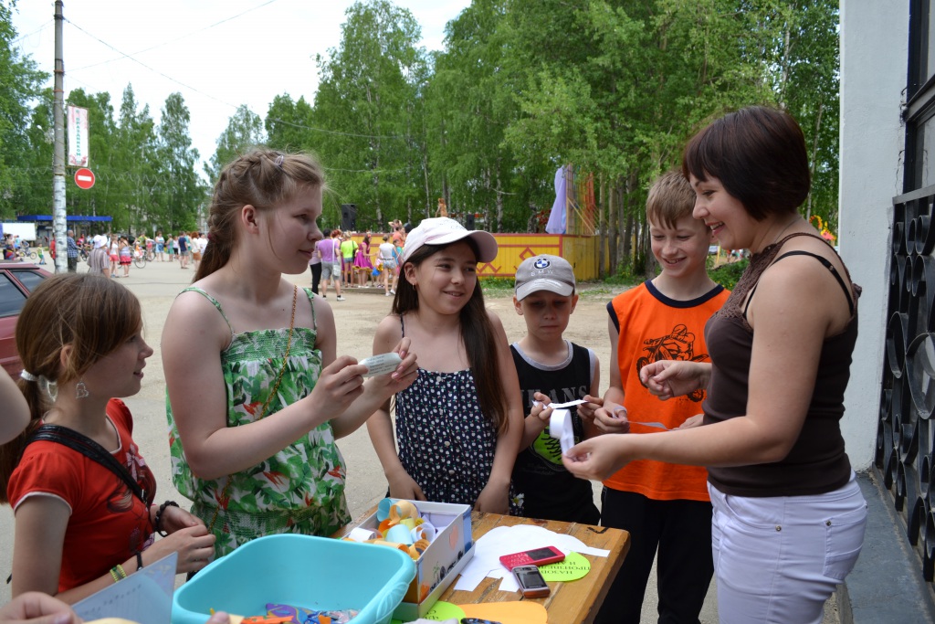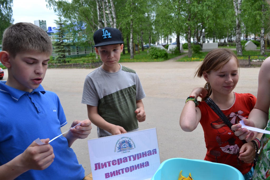 1 июня на Юбилейной площади Выльгорта, где районный Дом культуры организовал для детишек театрализованное представление, работала библиотечная станция «Остров непрочитанных книг». В медиаигре-викторине малыши и ребята постарше отгадывали загадки и названия литературных произведений, отвечали на вопросы по краеведению, восстанавливали недостающие слова в названиях книг известных авторов, «собирали» сказки.