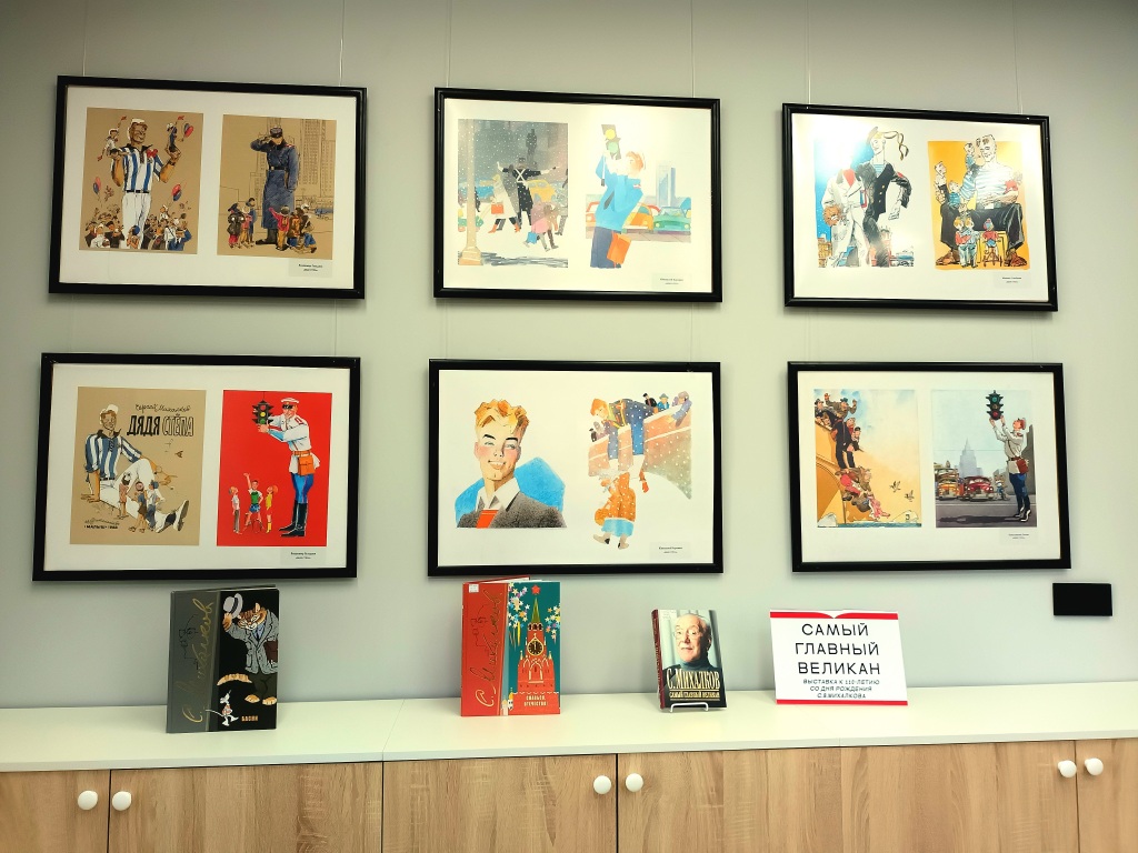 В Центральной библиотеке открылась выставка «Самый главный великан», посвящённая творчеству Сергея Владимировича Михалкова, предоставленная Российским фондом культуры.