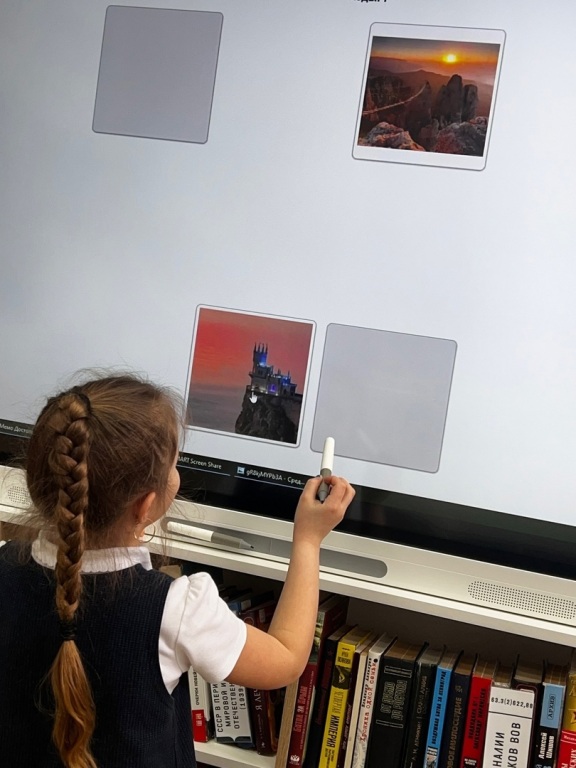 Библиотекарь подготовила для ребят онлайн-игру по типу всем известной игры на память «Мемо». Такая игра позволила ребятам не только проверить свою память и внимательность, но и узнать много нового об истории и достопримечательностях Крымского полуострова. Наши юные читатели с удовольствием открывали картинки и подыскивали им пару: многие из достопримечательностей они видели вживую!
