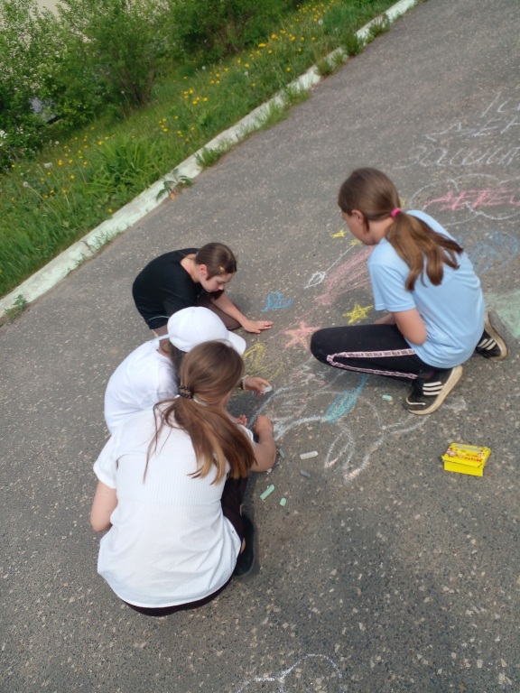 Сегодня для юных читателей Шошкинской библиотеки прошел увлекательный конкурс рисунков на асфальте. Рисунки получились очень яркие и разнообразные. Для кого-то праздник детства-это сердечки и воздушные шарики, для кого-то солнышко и любимые животные.