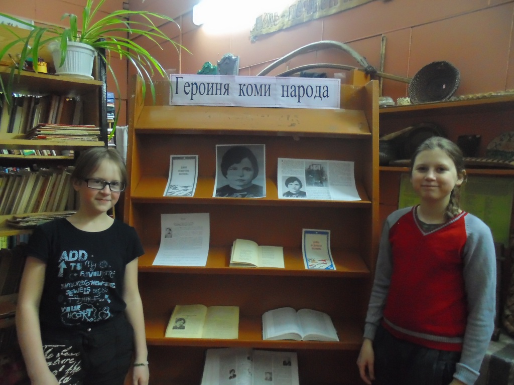 29 января для школьников 6-7 классов и 4 февраля для взрослой категории, проведена беседа "Героиня коми народа", о юной партизанке, уроженке с. Выльгорт Домне Каликовой, которая участвовала в боях против белогвардейцев, удивляя даже опытных бойцов-фронтовиков своей выдержкой и бесстрашием.