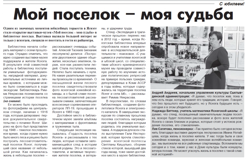 Мой посёлок – моя судьба / Стр. подгот. Наталья Прокофьева // Наша жизнь. - 2014. - 21 августа. - с. 7 : фот.