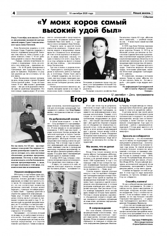«У моих коров самый высокий удой был» // Наша жизнь. – 2020. – 10 сент. (№ 37). – С. 4 : фот.